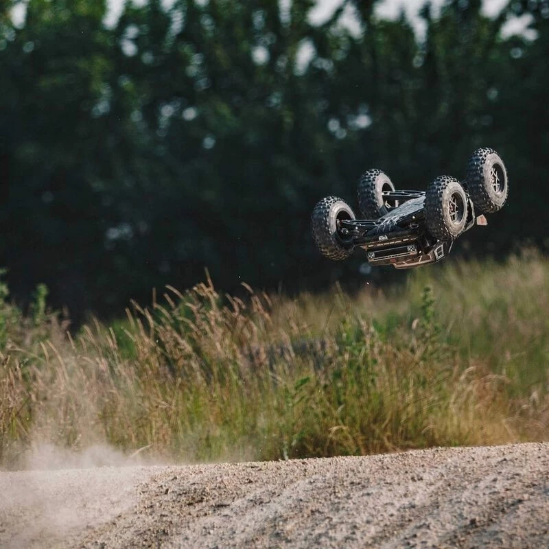 Rugged chassis components, including all-metal diff outdrives and gearbox internals, a heavy-duty drivetrain, strong composite chassis side pods, durable steel driveshafts, and more contribute to unstoppable bashing performance. The EXB front bumper and skid plate let you fearlessly tackle almost anything that stands in your way.