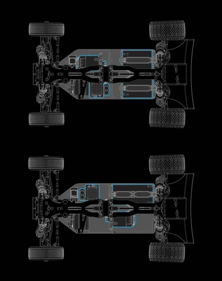 Battery Trays: Molded construction accomodates 2S saddle or shorty