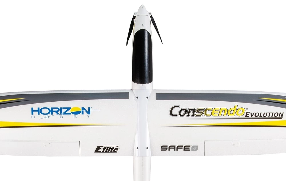 Construction with higher density EPO results in a stronger and stiffer airframe with a smoother finish. Combined with carbon and other composite reinforcement in the fuselage, wings and tails, the Conscendoยฎ Evolution can handle higher speeds and higher energy aerobatics โ yet is still lightweight to deliver excellent soaring and sport flying performance, plus long flight times up to 15-20+ minutes with a mix of power on and power off flying.