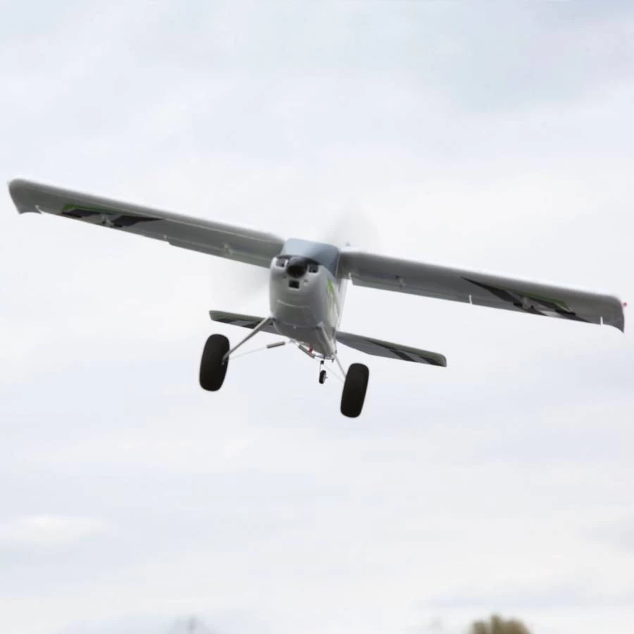The new wing design has a shorter span yet almost as much wing area as the original, plus it features drooped wingtips and can be equipped with the included optional-use leading edge slats for improved slow flight and STOL performance. These features, along with the lightweight design, oversized flaps and high-power brushless motor make it possible to spring into the air or float down to land in as little as two feet or less.