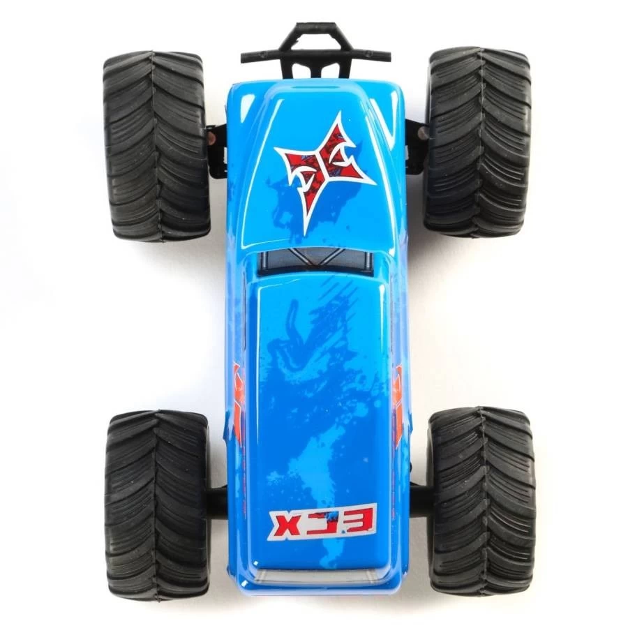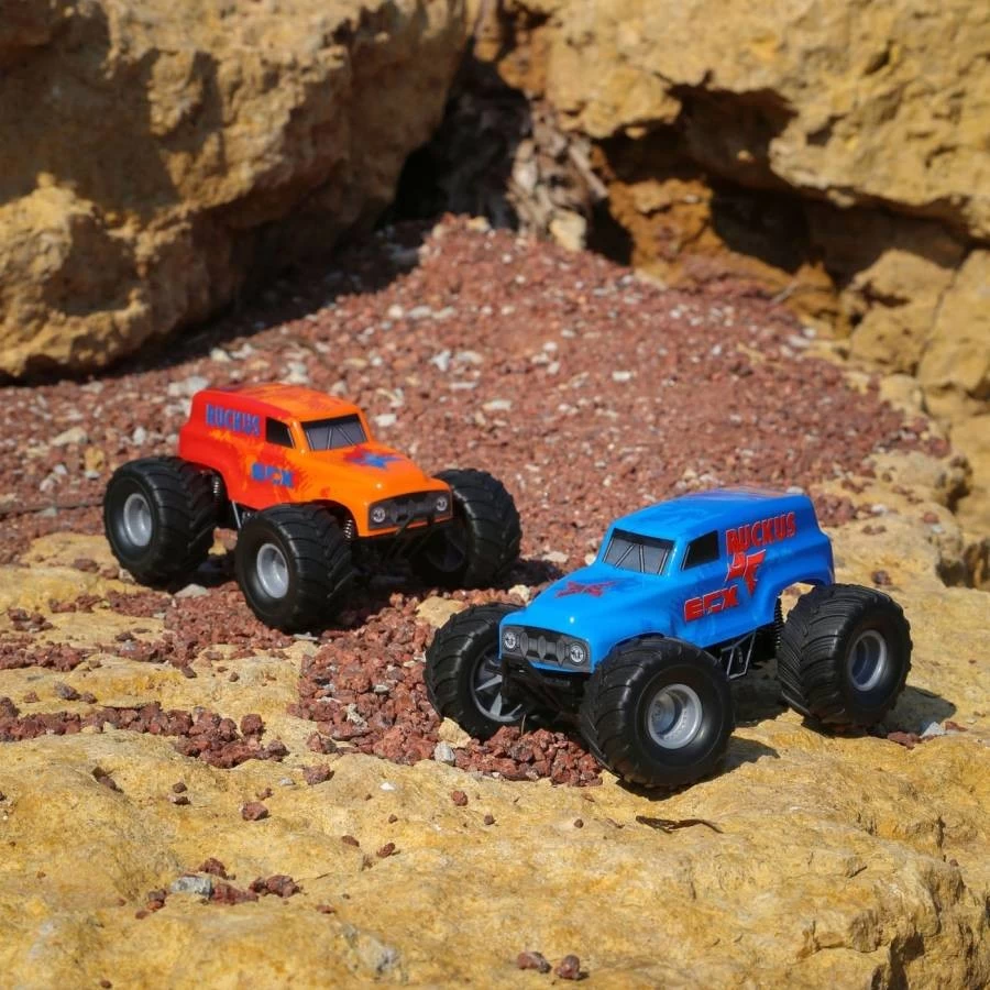The ECXยฎ 1/28-scale Micro Ruckusยฎ makes it easier than ever to start a radio control adventure. You get maximum bang for your buck since the Micro Ruckus doesnโt sacrifice performance or scale looks yet still comes in at a price the competition canโt beat. Its size, versatility and speed are perfect for indoor and light outdoor use. Tackle the pile of papers in your work cube, navigate a messy bedroom, or handle twigs and leaves on your backyard patio. All at a cost that doesnโt break the bank.