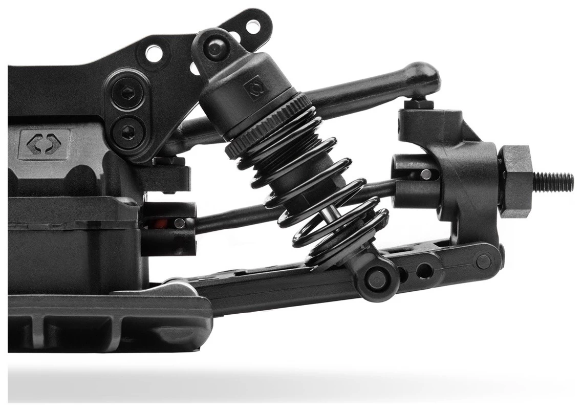 The suspension of the RS4 Sport 3 uses the race-proven double-wishbone suspension design, similar to a full scale modern race car. Youโll be able to control the anti-squat and anti-dive of the front and rear arms using the standard pivot blocks, and the option parts allow you to adjust the sweep and toe angles. You’ll also be able to easily change the roll center front and rear with the racing-style vertical ballstud mounting on both the inner and outer camber link mounts. Multiple shock mounting positions provide a full range of shock suspension angle adjustment to suit different road conditions.