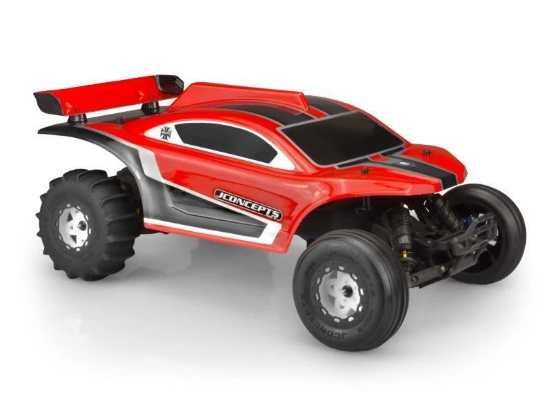 Get creative with this body; run it as a short course racing vehicle with competition tires or as a desert vehicle with paddle and ribbed tires. Go ahead, get crazy add a whip antenna; that’s what it’s made for. JConcepts BAJR V2 body looks sneaky good with prototype Hawk (JCO3153) front tires and Animal (JCO3154) rear tires mounted on Tremor (JCO3390 and JCO3391) multi-piece wheels. Pair this body with the matching Slash 2wd overtray ( JCO2052 ) or breathable chassis cover for Slash 4×4 (JCO2737) to keep the excess dirt out of your vehicle.