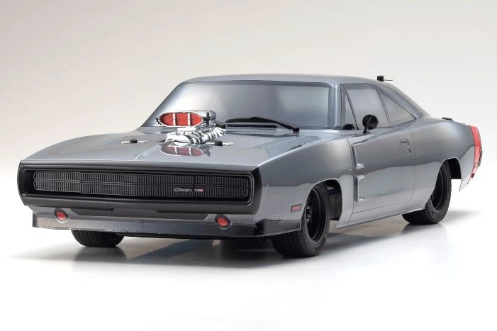 Defining the era of American muscle, the unique characteristics of the ever-popular Dodge Charger have been recreated with concealed headlights equipped with open/close function (operated by optional micro servo on 3rd channel) and the Kyosho designed supercharger. The coke-bottle lines of the semi-fastback 2-door hardtop is immaculately reproduced in a 1/10 scale polycarbonate body.