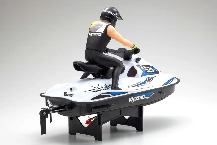 Optimal torque from the G14L water cooled 550 class motor works perfectly with the large capacity Kyosho Speed House KA60-91W speed controller to deliver crisp acceleration and racy performance while reducing heat loss. Styrene floats provide buoyancy that make the hull unsinkable, even if it is not completely waterproof. The hull and rider are pre-assembled, so all you need to do is install four AA batteries (sold separately) into the transmitter, charge the included NiMH battery, and mount the rider figure to get this model fully ready to run.