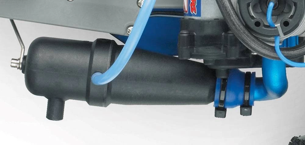 The TRX 2.5 Racing Engine uses a high-volume air intake system with a two-stage air filter. The filter housing and neck are designed to mate seamlessly with the carburetor to eliminate turbulence in the air-flow going into the engine.