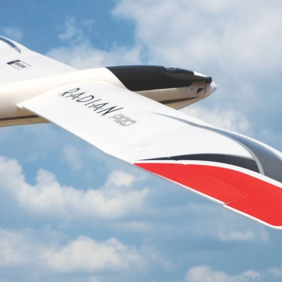 Like the original Radian, the Radian Pro also comes equipped with a powerful 480-size 960Kv brushless motor system that can catapult it to altitude in seconds. Its airframe is constructed from the same tough Z-Foamโข material and has been reinforced with fiberglass blades in the fuselage and wing to reduce flex. This reinforcement, along with that of the carbon fiber rod in the wing, make it possible for you to achieve a level of soaring precision with the Radian Pro thatโs on par with many competition gliders.