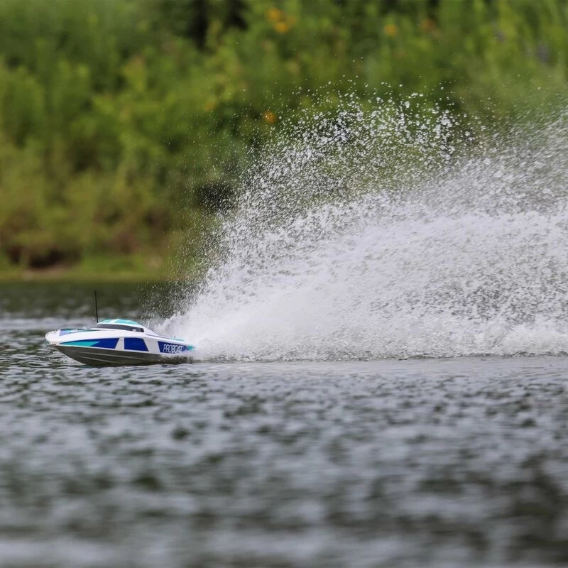 Break through choppy water and go full throttle with the Pro Boatยฎ Sonicwake 36-inch Self-Righting Deep-V. The perfect Deep-V for the beginner to the avid boater, it offers performance capable of hitting 50+ MPH and a worry-free self-righting feature that flips the boat back upright in a matter of seconds. The water-cooled 4-pole 1900Kv brushless motor invites you to go fast while the high torque, metal gear, and waterproof steering servo keeps you in control. It features improved dual water cooling, adjustable trim tabs, and larger turn fins. No matter your skill level, the Sonicwake features everything experts and beginners alike want in a Deep-V.