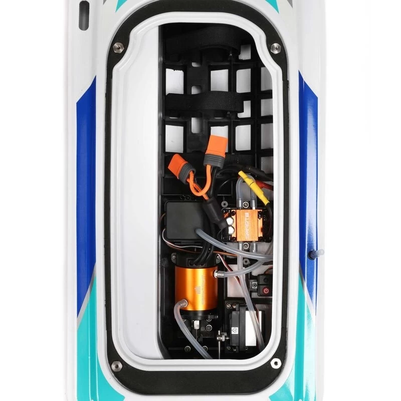 Keep your boat looking good, with this all-new interior keeping your boat clean is easier than ever. We have integrated a receiver box to keep your interior looking clean and dry. We have optimized mounting post for the all new Spektrumโข Smart 120A water-cooled ESC and powerful Spektrumโข Marine Brushless motor while providing easy access to securing your batteries.