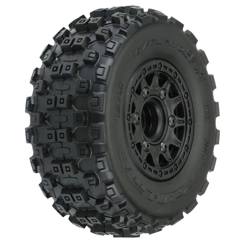 The Badlands MX SC tire uses the latest in motocross tread technology with huge, long-lasting lugs giving it the style and performance that have won over bashers across the globe. The oversized grass and dirt shredding lugs offer you the ultimate in performance under all-terrain type conditions. Compared to the previous Pro-Line Badlands tires, you can expect even better traction, improved wear resistance, and enhanced style! Made from Pro-Line’s legendary soft yet durable M2 compound, the Badlands tire is poised for battle and ready to take your Short Course Truck to the next level of bashing heaven.