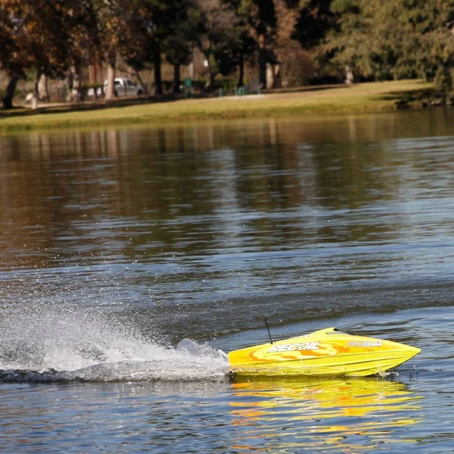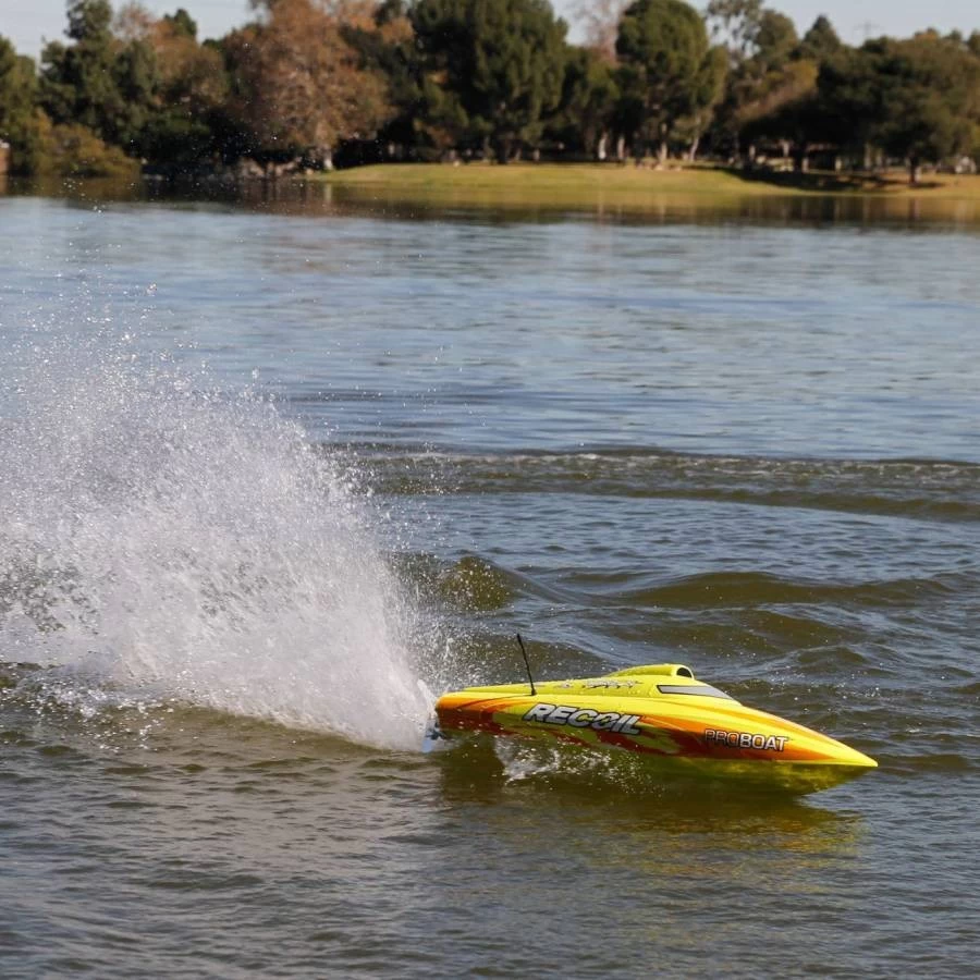 Push the limit of RC boating to the edge with the Pro Boatยฎ Recoilยฎ 26 Deep-V. This dynamic competitor delivers mayhem inducing momentum thanks to a 2100Kv brushless motor and 3S compatible 60-AMP ESC for 30+ MPH of wake-inducing excitement. Best of all, you can drive with the Recoil 26 with reckless abandon thanks to a revolutionary self-righting hull that will never leave you โup a creek without a paddleโ. If you do ever go belly-up, returning the Recoil 26 to a race ready position is as easy as punching the accelerator. Get your Recoil 26 and experience all of the fun of Deep-V boating without fear.