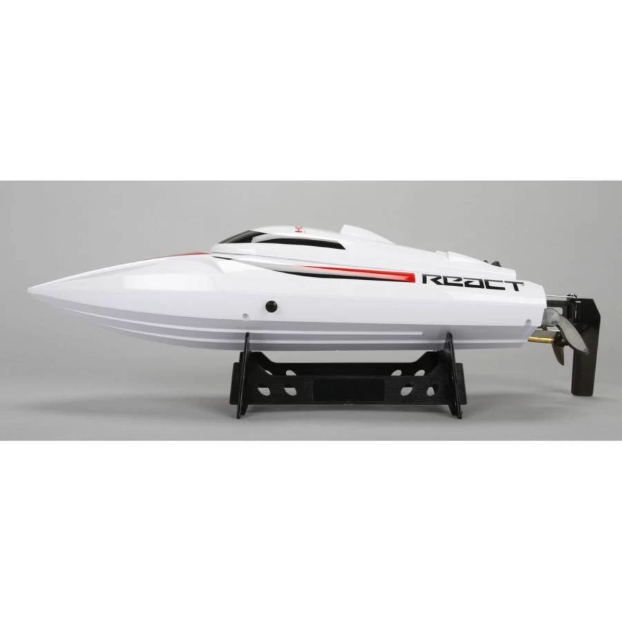 Take to the water with the compact and convenient Pro Boatยฎ Reactโข 17 Deep-V, a dynamic self-righting 17-inch Deep-V that will never leave you “up a creek without a paddle”. This intuitive RTR comes out of the box equipped with impressive features that give you the edge over the competition. Thanks to a potent 390 size brushed motor under its canopy, the React 17 makes it easy to overpower your competition with speeds in excess of 19+ MPH. In the event you push the boat past its limit and go belly up, getting the React 17 back to a race-ready position is as simple as “rocking the boat” by hammering the throttle backward and forward.