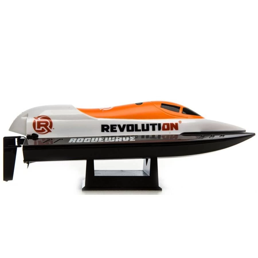 The Revolutionยฎ Roguewaveโข 10-inch self-righting F1 tunnel hull is a quick, nimble and durable electric boat that is perfect for pools or small ponds, and Ready-To-Run right out of the box. The impact resistant hull houses waterproof electronics like the speed control, steering servo and 2.4GHz receiver while the rechargeable battery offers zippy performance and good run times. But the awesome benefit of this boat is that you’ll never have to worry about capsizing. The Roguewave tunnel hull is designed with self-righting capability so it always flips upright no matter how much wake you make.