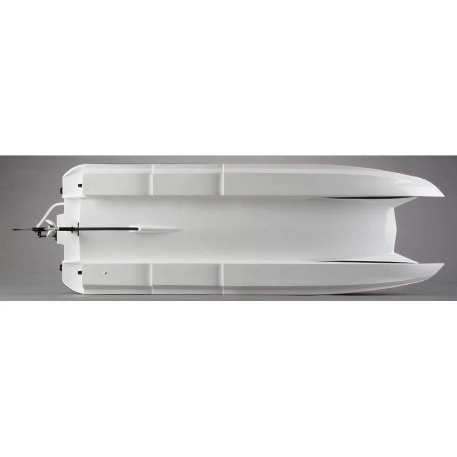 Rip, roar and race like never before with the Zelosโข 48 Type G Catamaran. This high-speed catamaran is equipped with a Dynamiteยฎ Zenoah G300PUM 30cc gas engine capable of a pulse-pounding 50+ miles per hour. By the time the competition knows what hit them; theyโll be eating your wake. The Dynamite Zenoah engine also features an EZ Start system requiring less than half the effort it takes on the average engine to pull the engine starter. The new top deck design resembles the sporty and classic look offered by the Zelos 36. A new trim scheme finishes off the look and ensures the boat looks as fast sitting on the shelf as it does on the water. Make some waves with the Zelos 48 Type G.