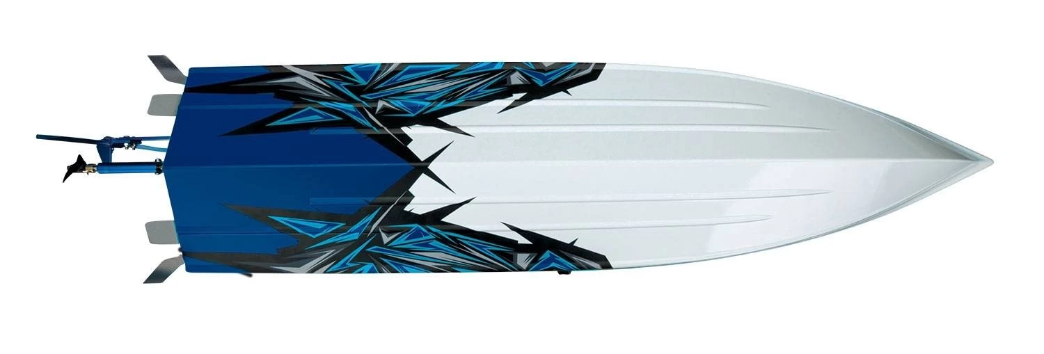 The Spartan’s clean, modern hull design is built up in layers for maximum rigidity where it matters most, the transom and ride pad. Lightweight yet incredibly strong, Spartan’s ABS hull is designed to withstand the stress of high-voltage brushless horsepower, without the weight penalty of a fiberglass hull. The transom bulkhead also incorporates bosses for the trim tabs, turn fins, rudder support, and drive strut, eliminating the need for additional hardware inside the hull. In the Spartan’s bow, molded foam is form-fitted to the interior, adding security as it further stiffens the hull. Outside the hull, Spartan impresses with its wild new factory-applied graphicsโa Traxxas trademark.