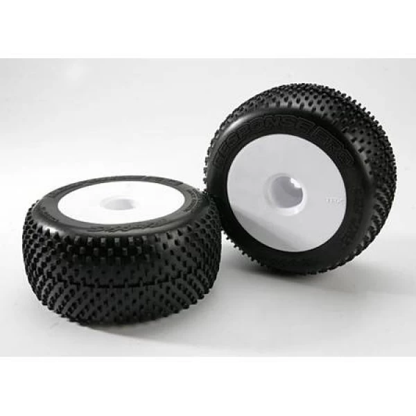 Use with 17mm splined wheel hubs and wheel nuts, part TRA5353X . The Response Pro tires are the ultimate in off-road racing performance. A taller profile increases side bite and offers better bump handling, while the new tread design and ultra-soft compound stick to the track surface. The outside row of spikes are contoured to provide just the right amount of side bite for smooth, predictable turn-in. The Response Pro racing tires come equipped with race-tuned foam inserts. 3.8″ dish wheels are the perfect match for the Response Pro racing tires. The dish wheels include uniquely molded hexes that lock into innovative splined 17mm hexes for increased torque handling and rock-solid alignment.