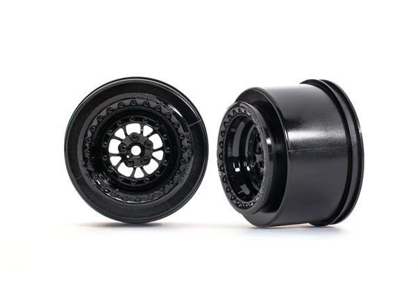 A set of two (2) Traxxas part #9473, Wheels, Weld gloss black (rear)