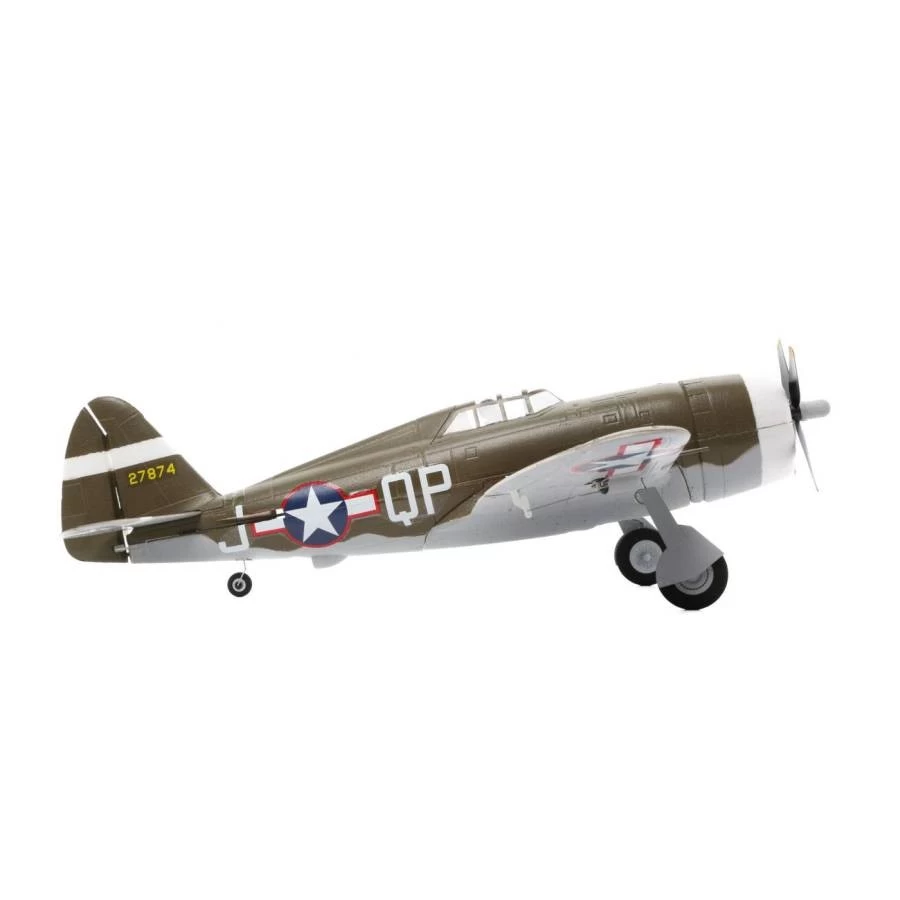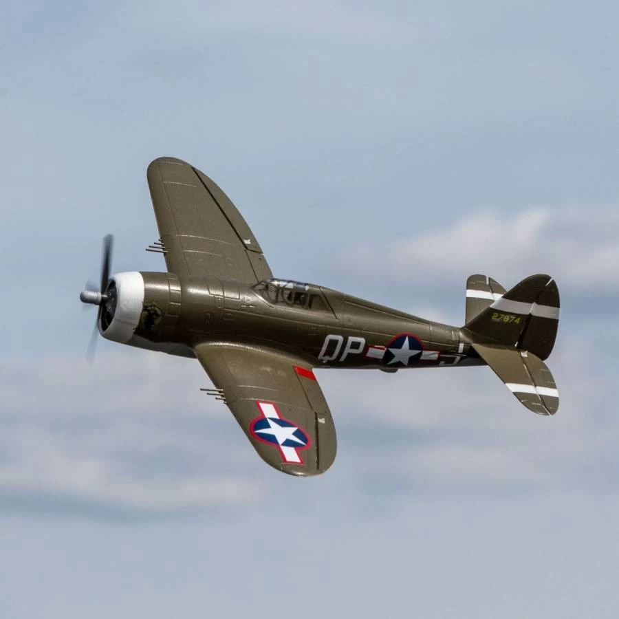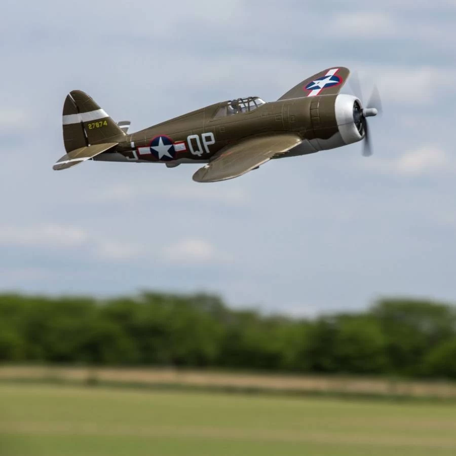 The P-47 was built to give the pilot the most power possible. Nothing is more evident to this point than the shape of its fuselage which was designed around a revolutionary supercharger which gave the eighteen-cylinder radial engine its full-rated horsepower even at 30,000 feet. Combined with eight 50-caliber machine guns and a complement of bombs or rockets, the P-47 proved how versatile it could be especially when its superior diving capability was used to pounce on both air and ground opponents. The E-flite® UMX™ P-47 BL combines brushless electric power with a potent 2S Li-Po battery system for a commanding ultra micro warbird that’s sure to make flying this fighter an exhilarating experience.